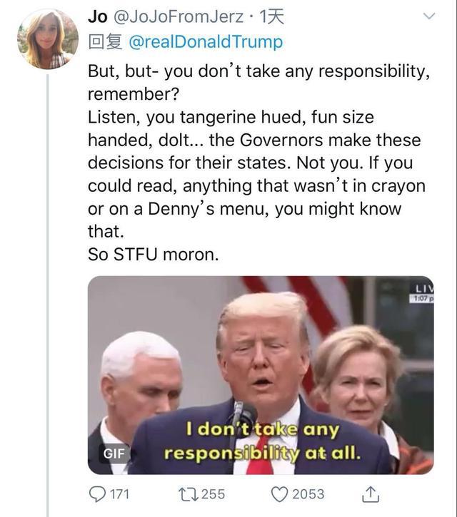 美国大众:听你的,我们都得死除媒介与政事人物外,洪量美国大众也在社接媒介上表白对于特朗普言论的品评。