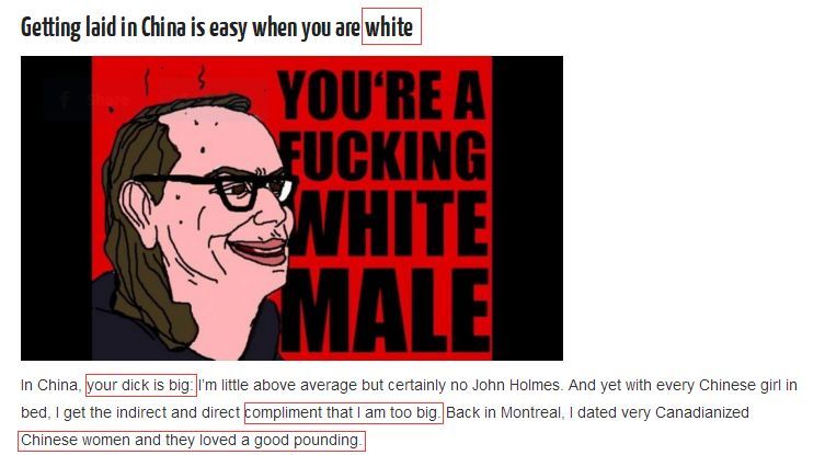 他还说本品行外受中国密斯迎接,中国妹子美丽又自动,屁股往何处一坐便有玉人过来搭讪,分分钟能约到炮,随随意便便能完毕百人斩以至千人斩。他吐露,有200多名女生想和他爆发闭系,要和他生混血儿童。