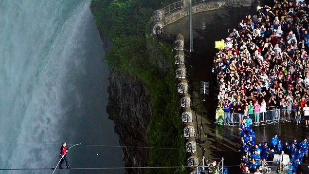 据吉尼斯世界记录的报讲:第一个走钢丝超过尼亚加拉大瀑布的人是美国人 - 尼克·瓦伦达(Daredevil Nik Wallenda),33岁时,他用走钢丝的方式穿梭了尼亚加拉大瀑布,成为了吉尼斯世界记录上走钢丝超过尼亚加拉大瀑布的第一人。