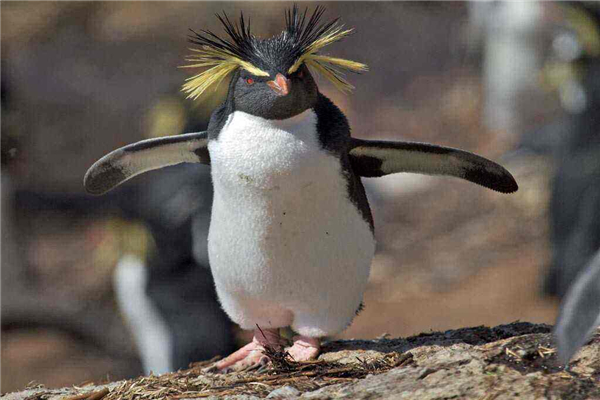 凤头黄眉企鹅与一般的企鹅区别比拟大,因为这种企鹅的头上有“鸡冠头”,在头颅上头会有黄色羽毛举行粉饰,耳朵二侧也会有黄色羽毛,眼睛是红脸色,十分的透亮,脚是赤色便像穿上了皮鞋一般,十分美丽。