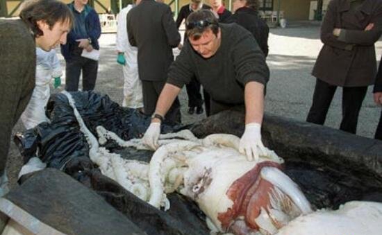 科学揭秘巨型鱿鱼之谜,巨型鱿鱼眼睛如篮球一般大_8米长