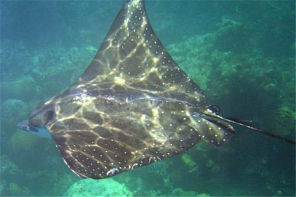 大燕魟属于燕魟科,在年少时代皮肤十分的光润,然而是成年之后皮肤却很毛糙,在身上会有许多的雀斑以及亮点。有些像大理石的斑纹。这种鱼的分散十分广大,不妨到达一百多个地域和国度,暂时为止这种鱼的数目并没有是许多,十分罕见。