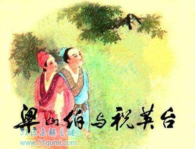 东晋时期,浙江上虞祝家庄,玉水河边,有个祝家女英台,美丽聪颖,自幼随兄习诗文,慕班昭、蔡文姬的才学,恨家无良师,一心想往红罗书院访师求学。祝父拒绝了女儿的请求,祝英台求学心切,伪装卖卜者,对祝父说:“按卦而断,还是让令爱出门的好。”祝父见女儿乔扮男装,一无破绽,为了不使她失望,只得勉强应允。英台女扮男装,远去杭州求学。途中,邂逅了赴红罗书院求学的梁庄书生梁山伯,一见如故,相读甚欢,在草桥上撮土为香,义结金兰。