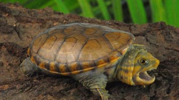 平胸龟俗名鹰嘴龟,成年龟背甲长12~18cm左右。这种乌龟为水陆两栖,喜欢生活在满是巨砾和碎石的,水流湍急的山涧中。因为胸部非常平整而得名,体型不是很大,但是性情凶猛,是淡水龟类中最凶猛的一种。