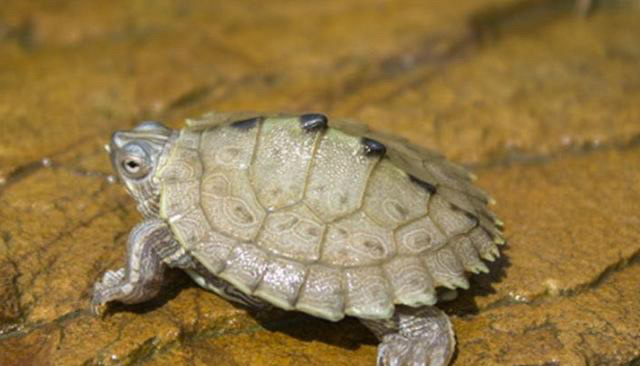 地图龟的背部壳纹很特殊,在它的背甲中有一条很明显的嵴突。在许多种类中,这条嵴突更像是伸向后上方的大型刺突或瘤节。这种乌龟的体型不是很大,但是具有一定的攻击性,喜欢食肉。