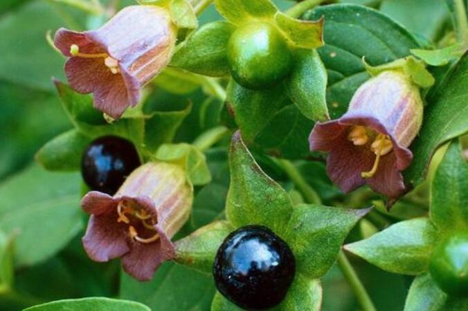 颠茄的花朵外表非常奇特,看起来十分美丽,但是它紫黑色的果实是有毒的,如果不小心吃掉许多,可能就会中毒,严重的可能影响神经中枢、麻痹神经末梢。不过它作为药材也可以治疗很多病症,比如盗汗或者当做镇痛药使用。