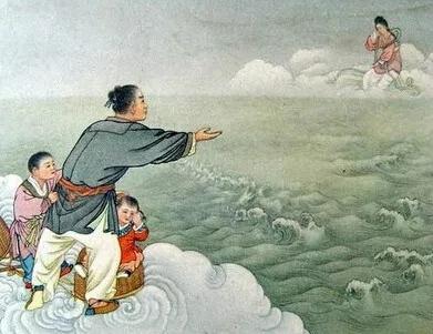 父子三人在天河西边痛哭,向织女招手,织女在天河东边痛哭,向夫君和孩子招手……