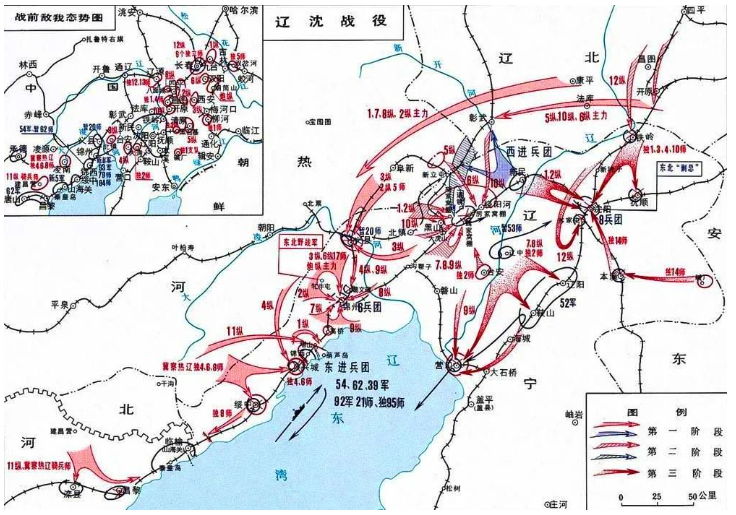 东北的国民党军队虽然还有55万人,但已被分割压缩在长春、沈阳、锦州三个孤立的地区;而东北解放军正规部队总兵力达70万人,连同地方部队33万人。