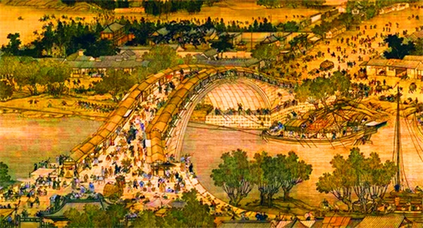 这幅耗费了张择端14年时间创作而成的画作,宽24.8厘米、长528.7厘米的,集中展现了北宋都城开封店铺林立、人烟稠密的繁华景象。画中的人物、牲畜、房舍、舟车、城郭、树木、桥梁、河流等惟妙惟肖,充满人间“烟火气息”,与以往文人绘画中士大夫的孤芳自赏形成了鲜明的对比,具有极高的艺术成就。