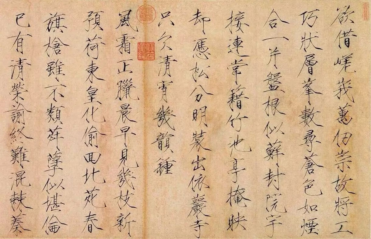 宋徽宗本身就是一位在绘画、书法、诗词、收藏等领域取得极高成就的艺术家,见到这幅绘画作品后赞不绝口,挥笔用瘦金体在画上题写了“清明上河图”5个字,并且加盖双龙小印。由此,这幅画就被称为《清明上河图》。