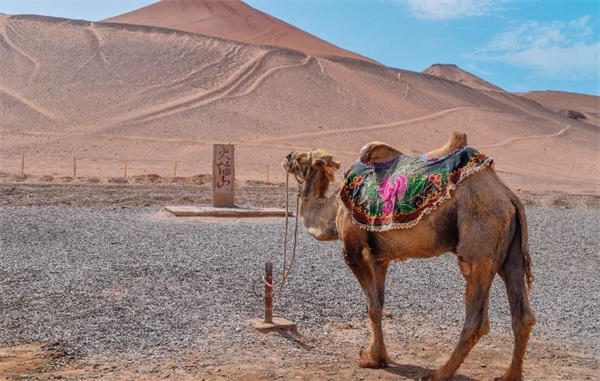 而一进去就能看到火焰山三个大字,而放眼望去,基本都是黄色的,时不时地还能看到骆驼。