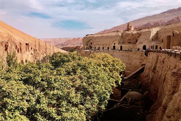 在火焰山不远处就是柏孜克里克千佛洞了,位于悬崖半山腰上,里面有很多洞窟、壁画等,是个佛教中心,始凿在南北朝后期,现在是国家重点保护文物。
