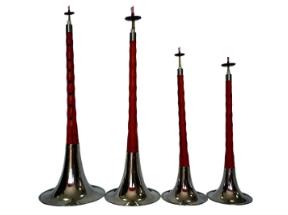 清代唢呐在宫廷被列入回部乐,也用于大驾卤簿。因两端都用铜制,又称“金口角”。后衍生出大唢呐、中唢呐和小唢呐等形制