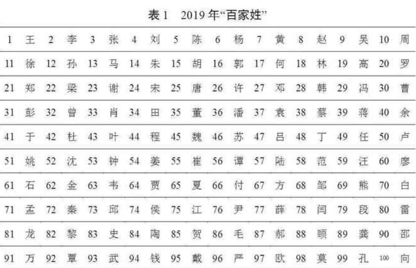 全国第一大姓氏排名人数