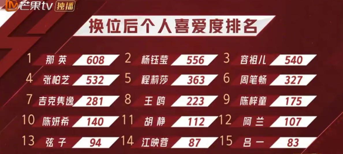 吕一是那种不算当红的女演员,以至于在个人喜爱度排名中是最后一名。