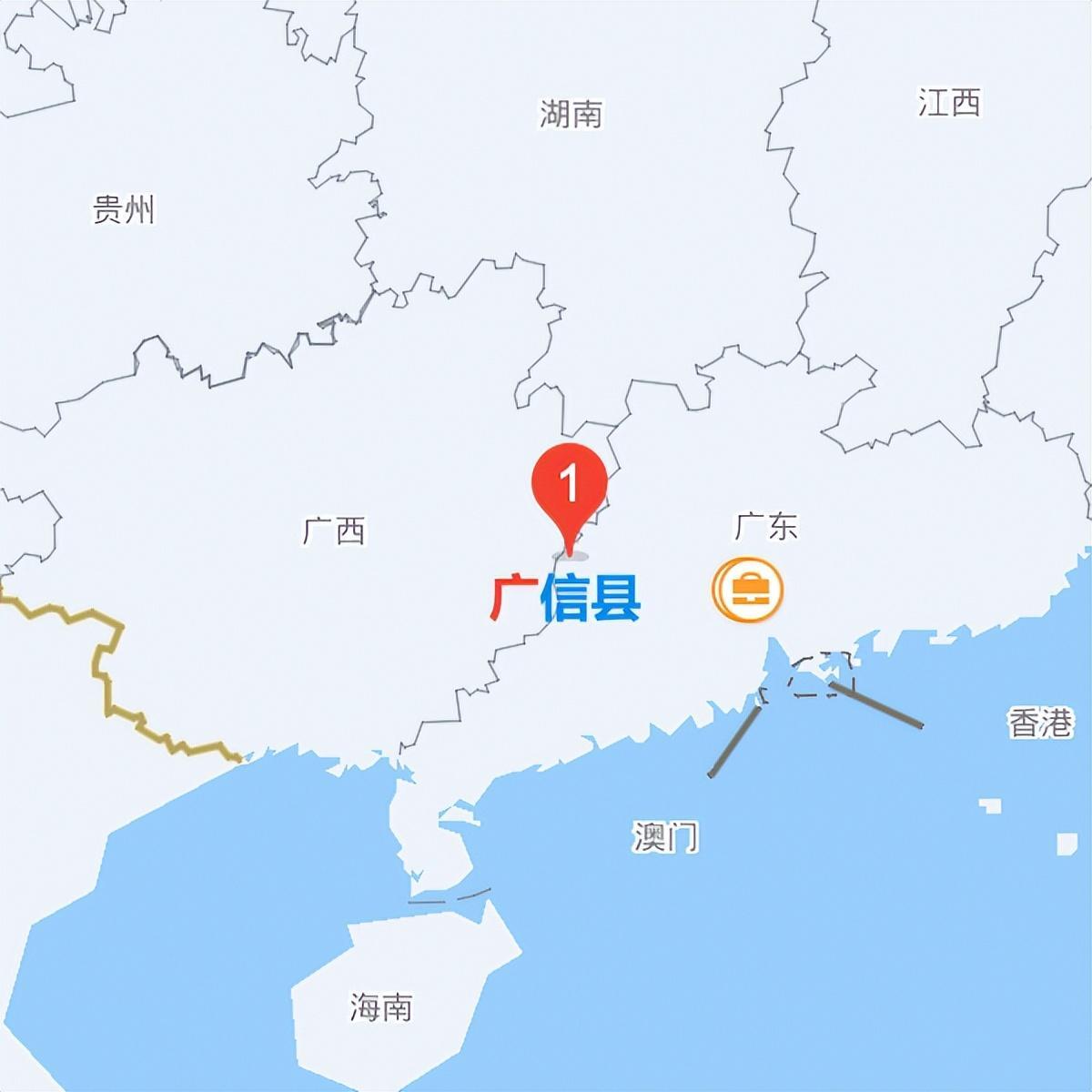 广信县以东就叫广东,以西就叫广西。但是现在已经没有广信县了。原广信县址,一说为现在的梧州市,另一说是现在广东省的封开县城。而这两个地方都在广东和广西交界处,梧州市属于广西,封开县属于肇庆市,肇庆在广东境内。
