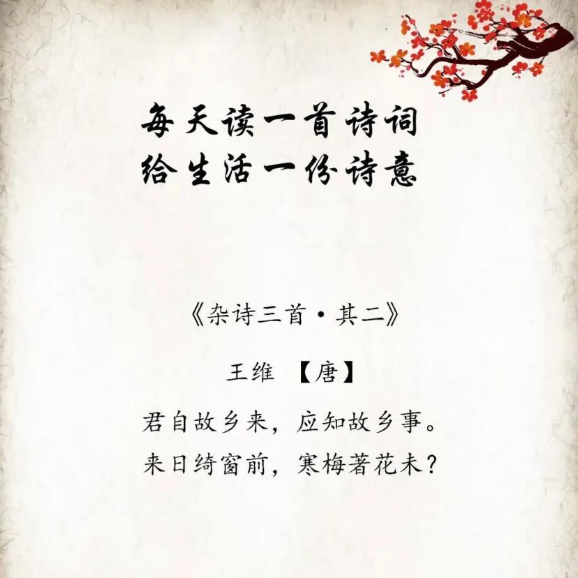 《杂诗(君自故乡来)》是盛唐时期诗人王维所作的一首五言诗,是组诗《杂诗三首》的第二首。