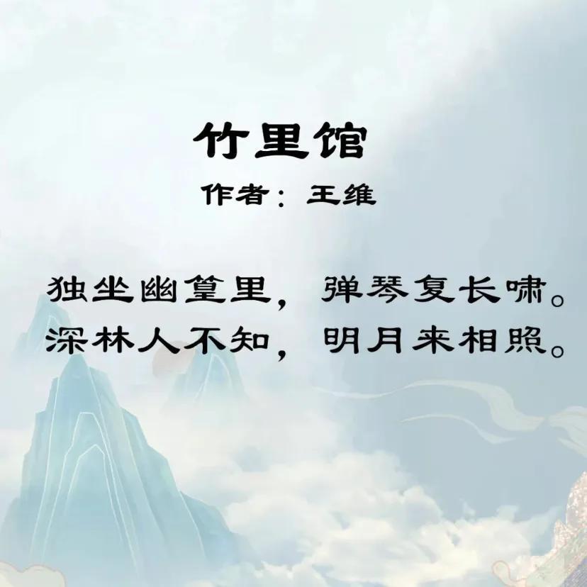 《竹里馆》是唐代诗人王维晚年隐居蓝田辋川时创作的一首五绝。
