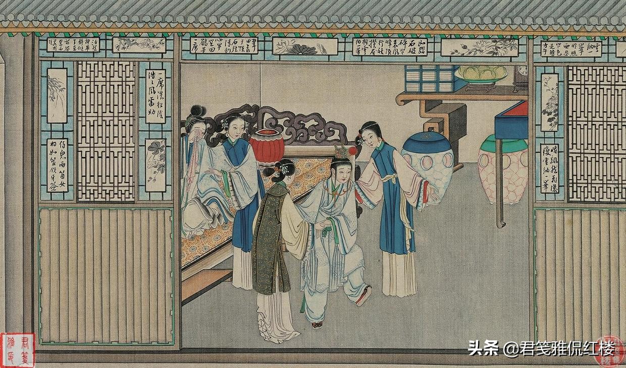 晴雯给林黛玉送手帕,代表贾宝玉对林黛玉借《西厢记》故事表白。晴雯送手帕是隐私,春纤晾手帕是曝光。