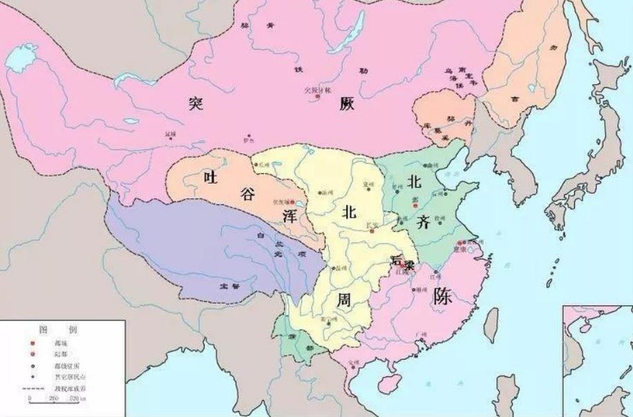 因此,从时间上来看,公元557年的时候,北齐、北周、南陈这三国都正式建立了。到了公元577年,也即三国鼎立的格局持续20年后,北齐、北周、南陈开始相继灭亡。而灭亡这三个国家的,则是来自于第四方的隋朝。