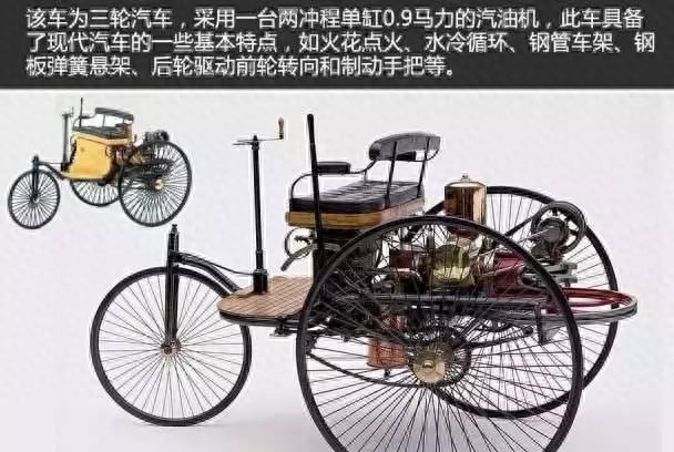 1886年7月3日,本茨的三轮自动车在大庭广众面前公开亮相。车虽然只走了300米,但无论车的构造,还是性能却已具备了现代汽车的基本特点,从而奠定了现代汽车的基础。
