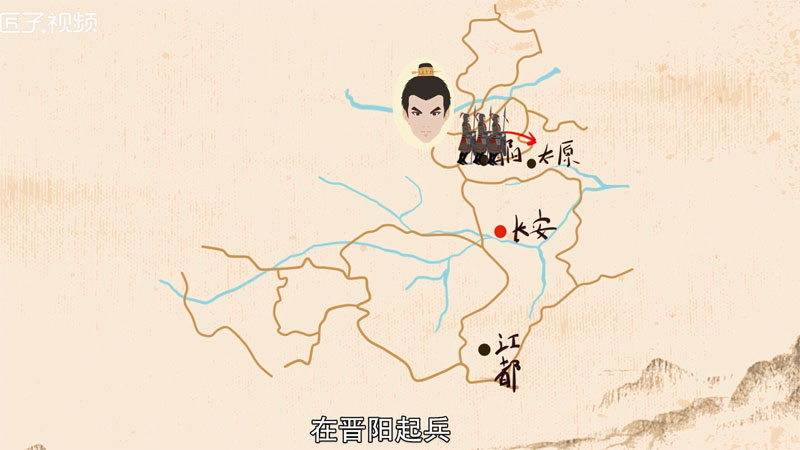李渊出身在北周的贵族家庭,七岁袭封唐国公。隋文帝时期,李渊靠着姨母独孤皇后的关系,先后担任谯、岐、陇三州刺史。公元615年,李渊镇压母端儿农民起义,收编大量农民军。公元617年,李渊与李世民杀了太原副留守王威等人,在晋阳起兵。随后,李渊趁着隋炀帝远在江都,火速攻占长安。占领长安后,李渊立隋炀帝孙代王杨侑为帝,自封为唐王和大丞相。隋炀帝被禁军杀后,李渊在长安称帝,国号唐。唐建立初期,李渊派遣儿子们平息各方割据势力,从而完成统一全国的大业。公元626年,李世民发动玄武门政变,李渊退位太上皇。公元635年,李渊因病在垂拱前殿驾崩,享年六十九岁。