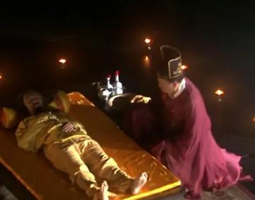 第四:灌水银。相比较上面三种处决殉人的手段相比,灌水银犹如使用生化武器,显得更变态,更让人毛骨悚然。为了让殉葬的人的尸体或是容貌保持一个完好的形态(用不恰当的比喻就是新鲜),古代人想出了用水银来杀死殉葬的人。大概做法是先给殉葬的活人喝一些镇静的或是麻醉的药,然后在头上切开一个洞,拿着勺子往里面灌水银,加入一定量的水银后,再拿针线缝起来。或者最直接的就是给殉葬者往嘴里灌水银。据说这种方式在密闭的环境中尸体不会腐烂(想想都让人头皮发麻)。