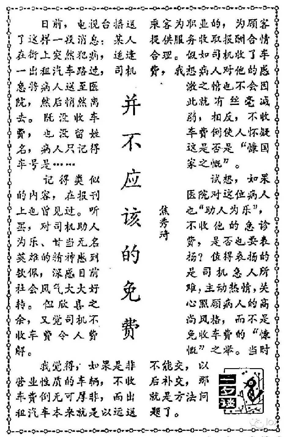然而这篇评论认为,这是“慷国家之慨”。因为汽油钱是国家的嘛。所以,还是应该补交车费。