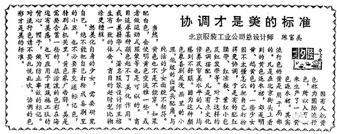 当时,社会上的衣着五颜六色,流行鲜艳。然而有明白的专家指出,其实,协调才是真的美。