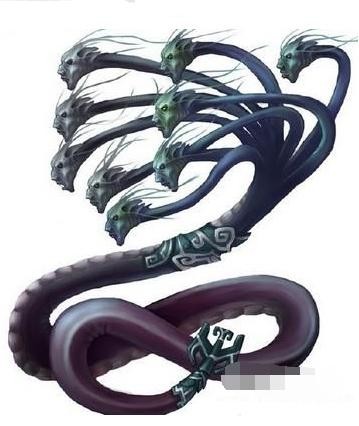 《海外北经》:共工之臣曰相柳氏,九首,以食于九山.相柳之所抵,厥为泽溪.禹杀相柳,其血腥,不可以树五谷种.禹厥之,三仞三沮,乃以为众帝之台