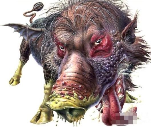 猪头狗身,身躯巨大,黑毛,硬刺,赤目,能暗中视物。喜食腐物,喜居阴暗潮湿处。