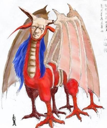 《山海经(中次二经)》:“大体如蛇,但有四翼,发磐磐之音。见则其邑大旱。”