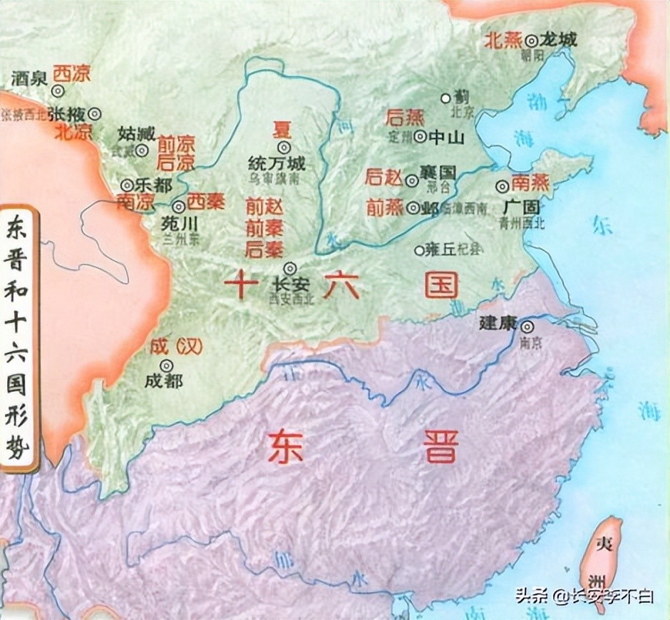 十六国历史发生在西晋灭亡后,东晋与北方十六国并立的时期。西晋末年,北方各民族大量内迁,对晋帝国呈现半包围形势,加上晋朝管理不善,民族矛盾、阶级矛盾尖锐,八王之乱后,胡族纷纷叛变,开启了十六国时期。