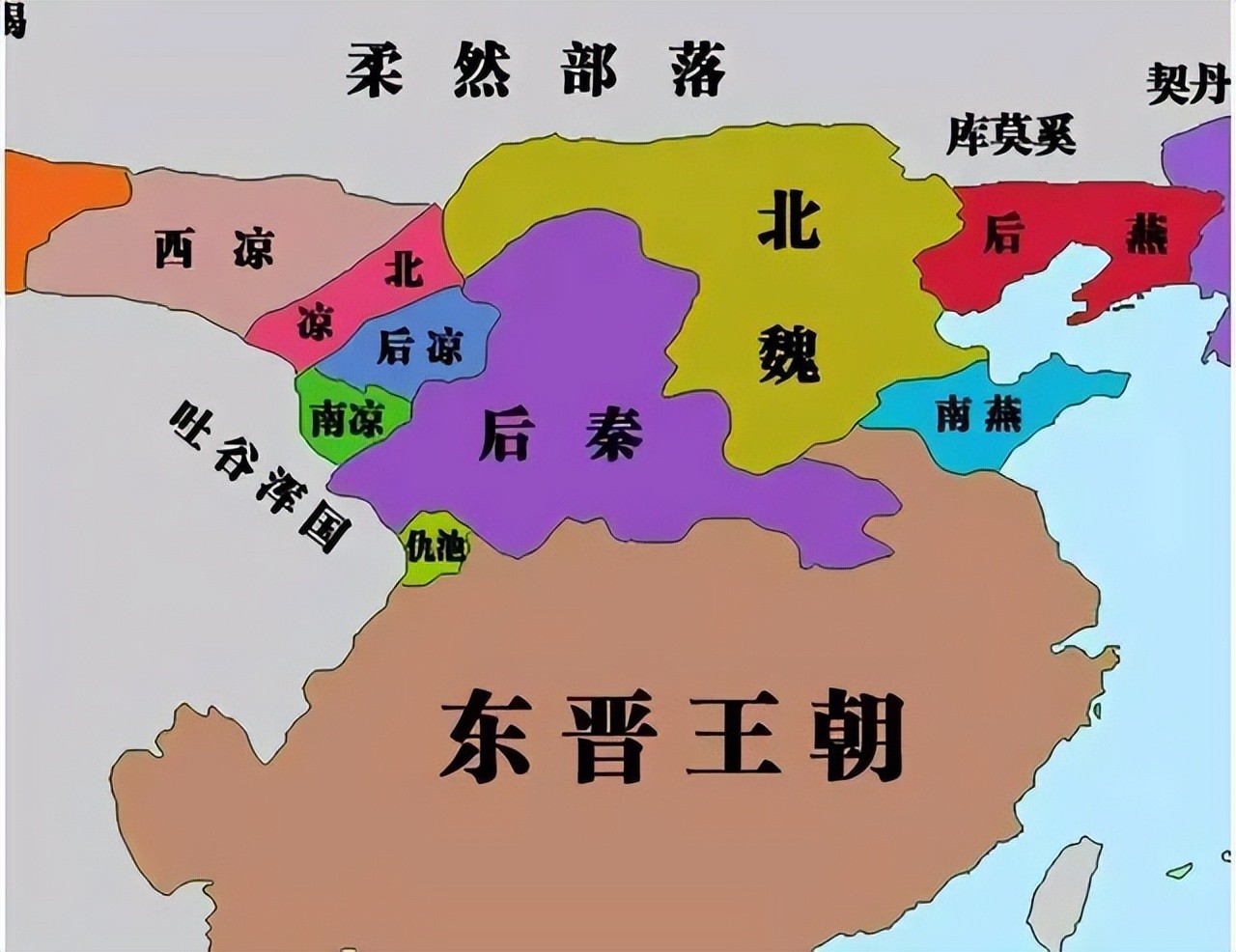 后燕、北燕、南燕等政权相继建立。北魏崛起,逐步统一北方。十六国后期,北魏逐渐强大,兼并了后燕的大部分地区,将燕国分为了南北两部分,于是形成了北燕和南燕。后秦也强盛一时。匈奴和鲜卑族融合产生的铁弗匈奴建立了大夏,史称 “胡夏”。413 年,胡夏消灭了西秦。在河西走廊,新出现了南凉、北凉、西凉等政权,他们消灭了后凉政权。十六国末年,北魏先后吞并了北燕、西凉、大夏等国,逐渐统一了北方。而南燕、后秦也被刘裕消灭,从此十六国就基本消失了。刘裕的势力增长后,又取代了东晋王朝,建立了宋朝,于是中国的历史进入了南北朝时代。