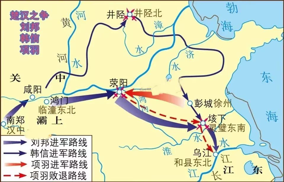 前205年,八月魏王豹反汉归楚,九月,韩信突袭安邑,生擒魏豹,灭魏国。闰九月,韩信破代国,代亡。十月韩信背水一战,大胜20万赵军,一举灭亡赵国。随之乘势不战而迫降燕王臧荼,平定燕国。与此同时,刘邦对赵之邯郸发起进攻,攻下邯郸,赵国。经过一些列的战争,刘邦实现了对楚的战略包围。