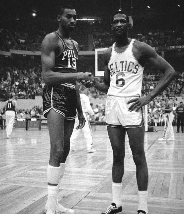 1959年,张伯伦职业生涯第一次对阵拉塞尔