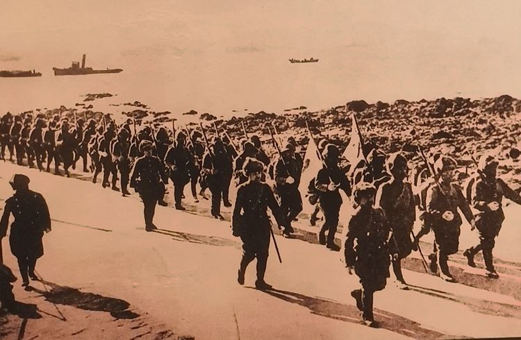 ▲德国远东舰队司令棣利斯以军事登陆演习为名占领青岛。