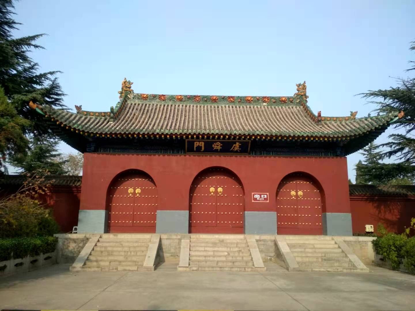 的立体雕塑,再往前是石刻的二十四节气图,二十四节气图的尽头过了金水桥,就是尧庙的正门了。正门的西边是虞舜门,