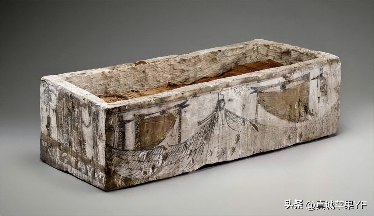 温妮弗的石棺,公元前 380-332 年,是一种不寻常的大型梯形石棺的典范。装饰,巧妙地雕刻在坚硬的石头上,盖子上有一个人头鸟形式的埃及符号Ba的形象。这些文字是《死者之书》中的咒语,旨在保证温妮弗成功转变通往精神灵界。