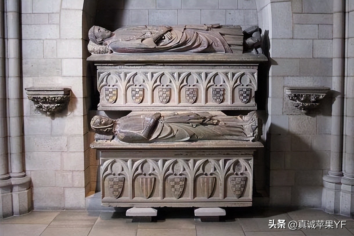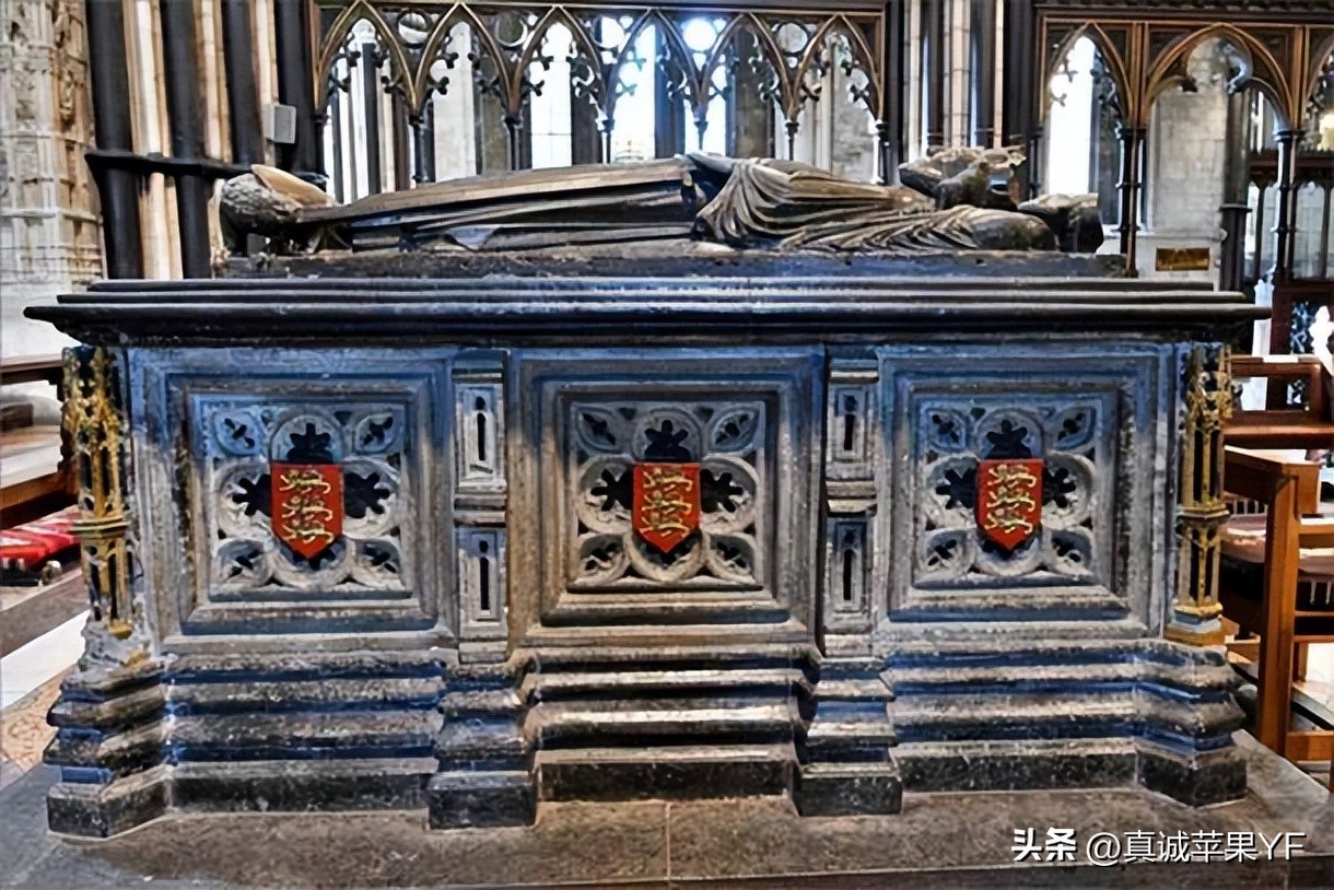 约翰国王的坟墓,1216年,英格兰伍斯特大教堂。约翰国王是自1066年被征服以来统治英国的第七位国王。约翰墓上的雕刻很特别,因为它很好地描绘了他死时的真实情况,而不是英雄式的演绎。它可以追溯到1232年,也是英格兰最古老的皇家雕像。