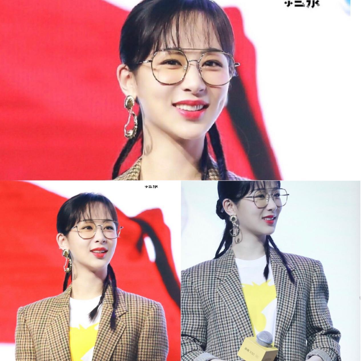 这组造型是湖南卫视跨年晚会现场的发型,前面的刘海没有很大变化,发型的辫子是从太阳穴往侧面后脑勺方向编的,侧面仍然留了几丝头发来修饰脸部的线条感。总体上还是甜甜的,美美的。还被网友称为最甜女友造型呢!