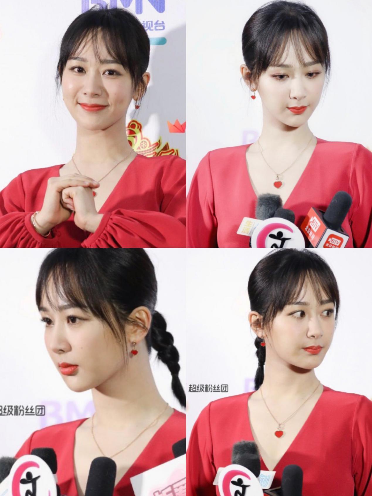 xx之夜晚会现场杨紫的发型采用的是头顶堆积式的盘发,这种发髻比较端庄优雅。如果纯粹是平面发髻的话,会显得稍加成熟,但加上辫子之后就会立马显得更年轻活泼。