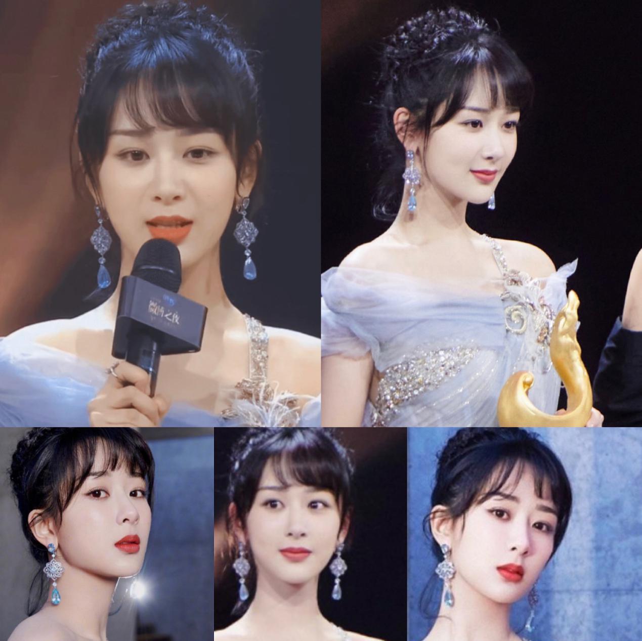 这是杨紫为数不多的直发造型,不过这张可能修图有点过了,感觉都不太像杨紫了。完全直发稍显呆板,虽然没有编发动感活泼,但也能凑合看。