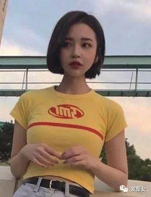 刘海齐眉的短发被称为妹妹头,两侧剪齐稍微有点内扣,给人一种很乖巧可爱的感觉,很日系风格的一款减龄发型,超级适合学生党。