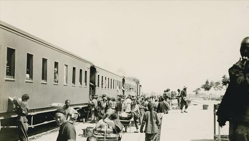 火车即将启动的时候,站台上突然传来一阵骚动。几名迟到的官员正匆忙赶来送行,引得车上的大臣们纷纷探头张望。