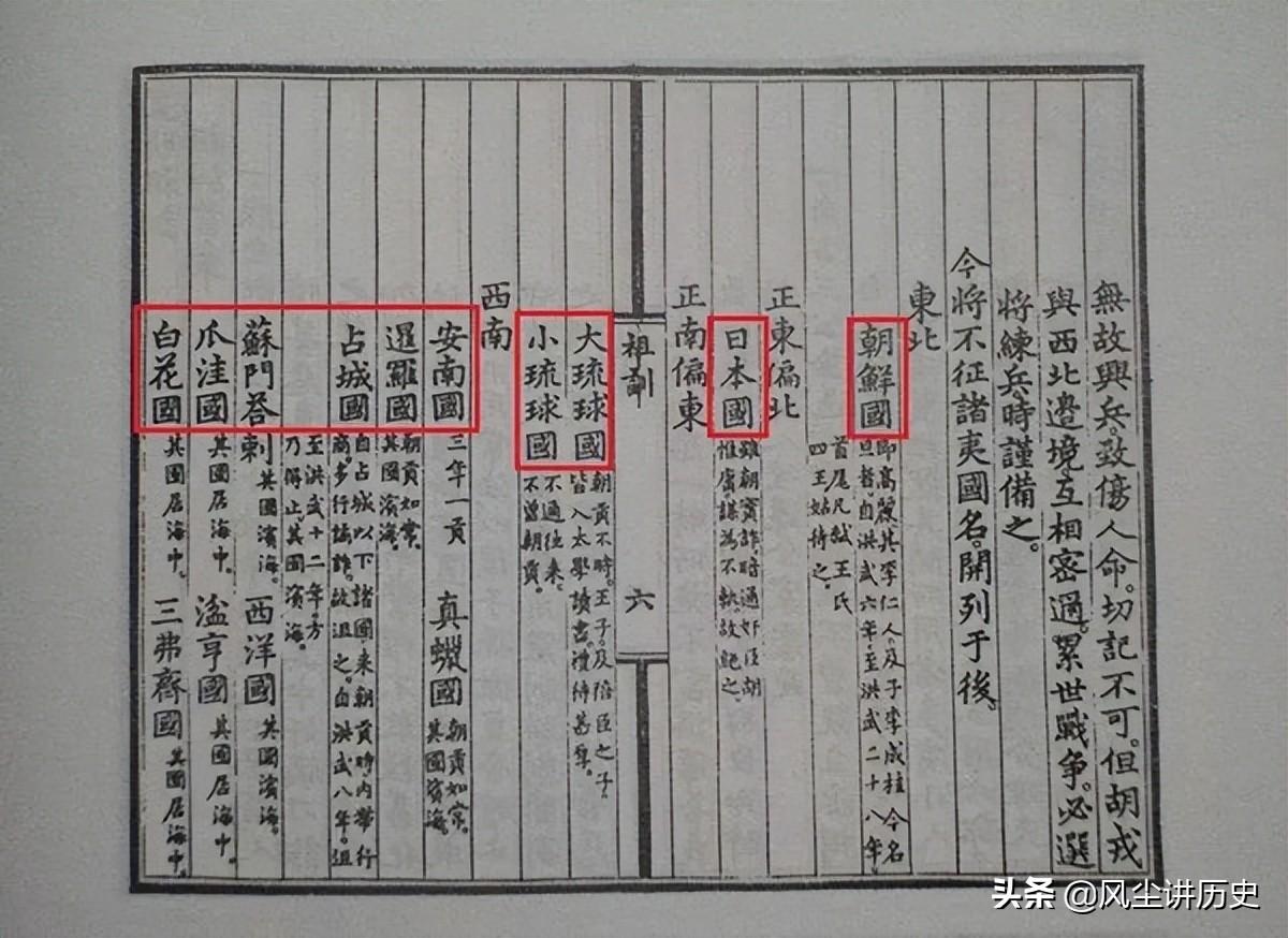 早在洪武二十八年朱元璋就在《皇明祖训》中列举了15个远在海外的“不征之国”,分别是: