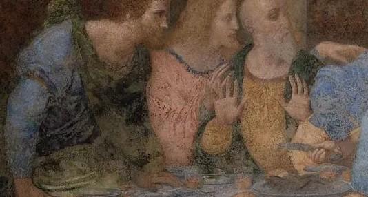 《最后的晚餐》是意大利艺术家达芬奇所作,以《圣经》中耶稣跟十二门徒共进最后一次晚餐为题材,画中人物的惊恐、愤怒、怀疑等形态,以及手势、眼神和行为,都刻画得精细入微,惟妙惟肖。
