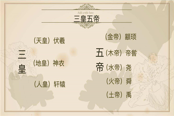 三皇指的是伏羲、还有神农,以及轩辕。而五帝则指的是黄帝、颛顼、帝喾、尧、舜。三皇五帝是人类的祖先,在太古时期就已经为人类造福,有很大的贡献。最早三皇五帝都是一些部落的首领,当部落日益强大之后,被后人尊称为皇或者是帝。