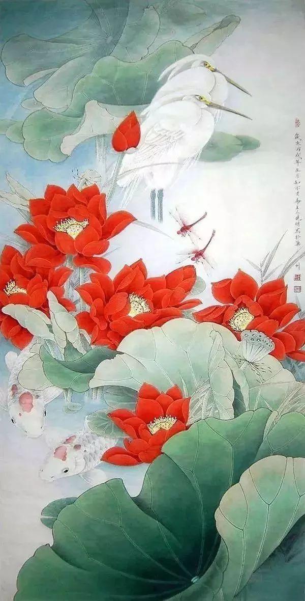 以工笔重彩,水墨写意两种主要画法分为两大形式;