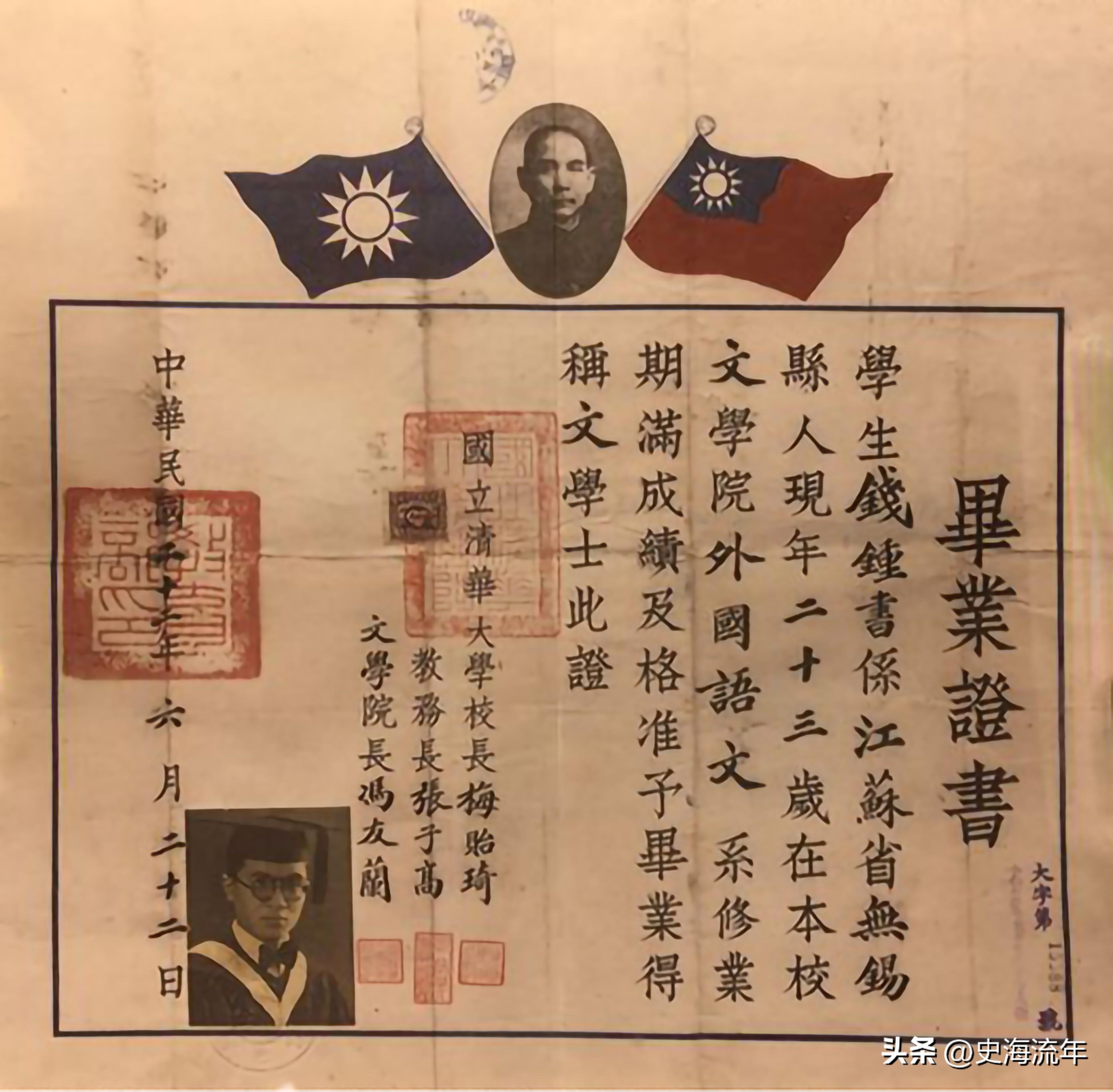 夫妻都是旷世奇才,大家风范,钱钟书先生的清华大学毕业证书曝光!